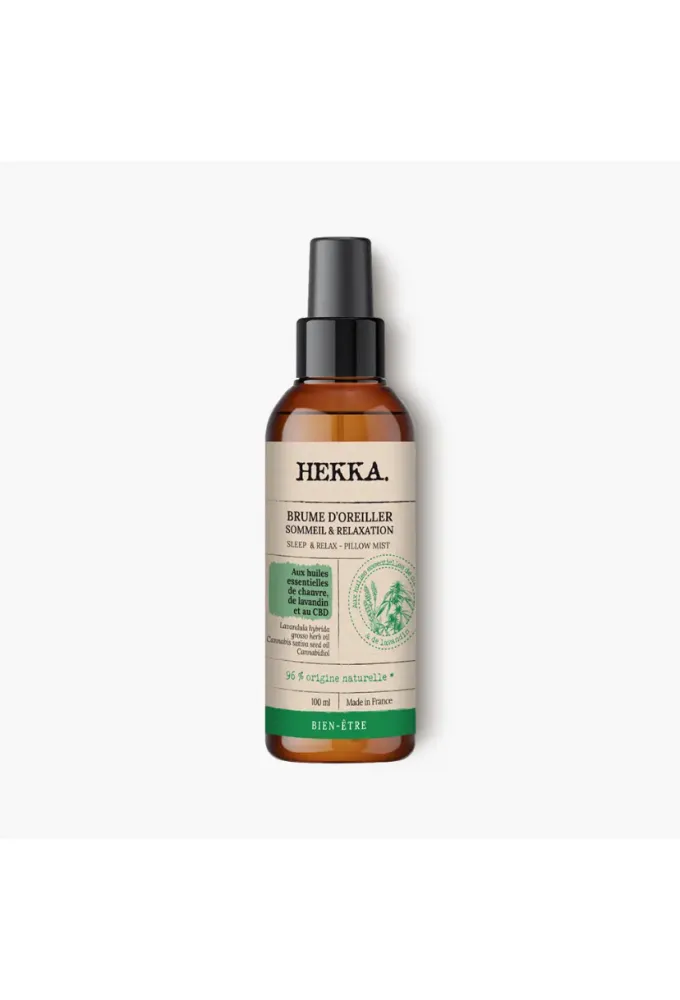 En Bruma de almohada para dormir y relajarse HEKKA contiene de CBD, y elaceite esencial de cáñamo conocido por aliviar, promover relajación y el relajación y elaceite esencial de lavandín, que crea condiciones a noche tranquila en un ambiente de tranquilidad.