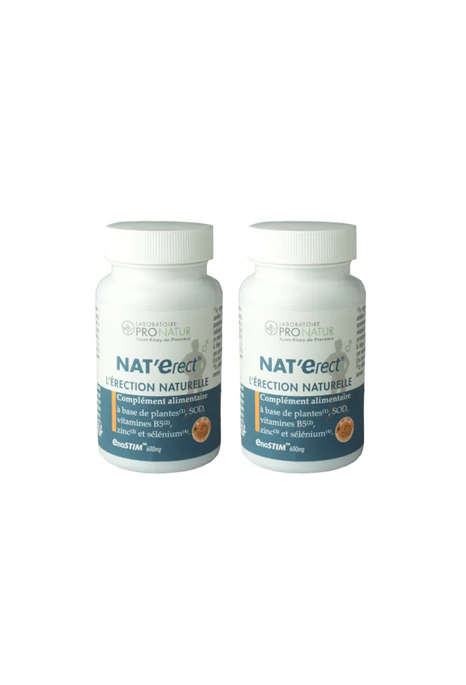 - NAT'Erect es un complemento alimenticio que contiene Enostim, zinc, selenio, SOD de melón y vitamina B5.