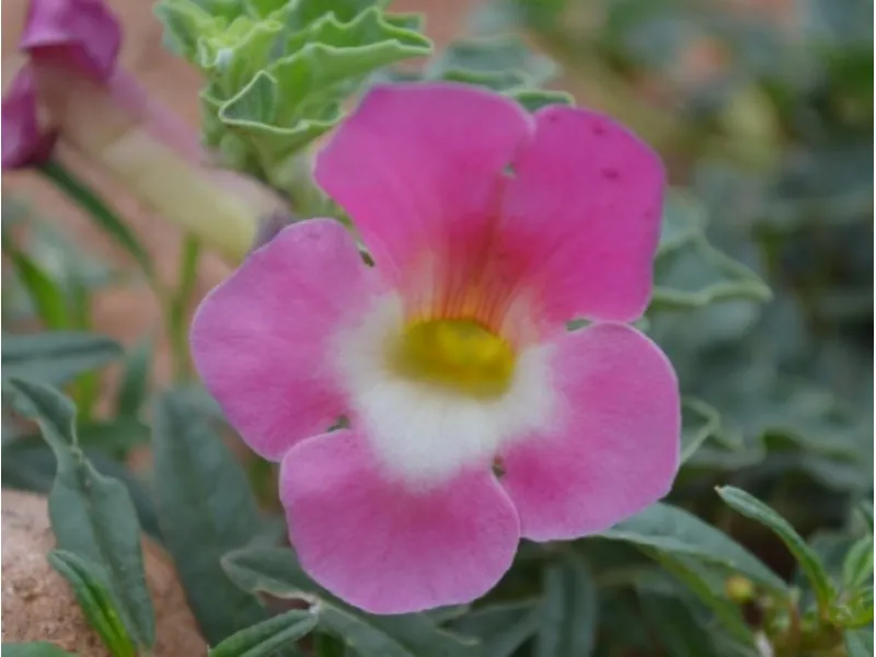 Ses fleurs en forme de trompette sont d’un rouge tirant sur le violet et ses racines qui forment de gros tubercules sont composées d’une racine principale qui va chercher l’humidité dans la terre en profondeur, ainsi que des racines latérales dites "secondaires".